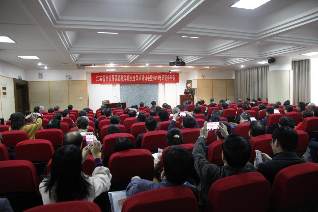 江苏省高校外国语教学研究会学术研讨会暨2016年江苏省高校外国语教学研究会年会于2016年11月18日-20日在我校举行。本次研讨会由江苏省高校外国语教学研究会主办,我校伟德国际1946承办,来自省内外130余名专家与学者(其中绝大部分为省内各兄弟院校伟德国际1946院长、副院长与系主任)围绕“信息化环境下高校外语教学改革探索与行动”的研讨主题展开了深入探讨与交流。