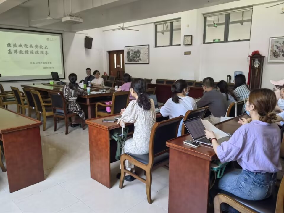 高洋教授的讲座深入浅出,从研究背景出发,阐释包括新冠疫情以及人工智能对英语教学的影响。高洋老师援引了主要的理论背景,包括社会文化理论以及分支理论,如最近发展区域理论以及活动理论等以及生态给养理论等,为后续的研究分析打下基础。随后高洋老师阐述了数据收集和分析的过程以及研究结果,即高校青年英语教师身份转变的各个阶段。最后高洋老师提出了未来研究的方向。