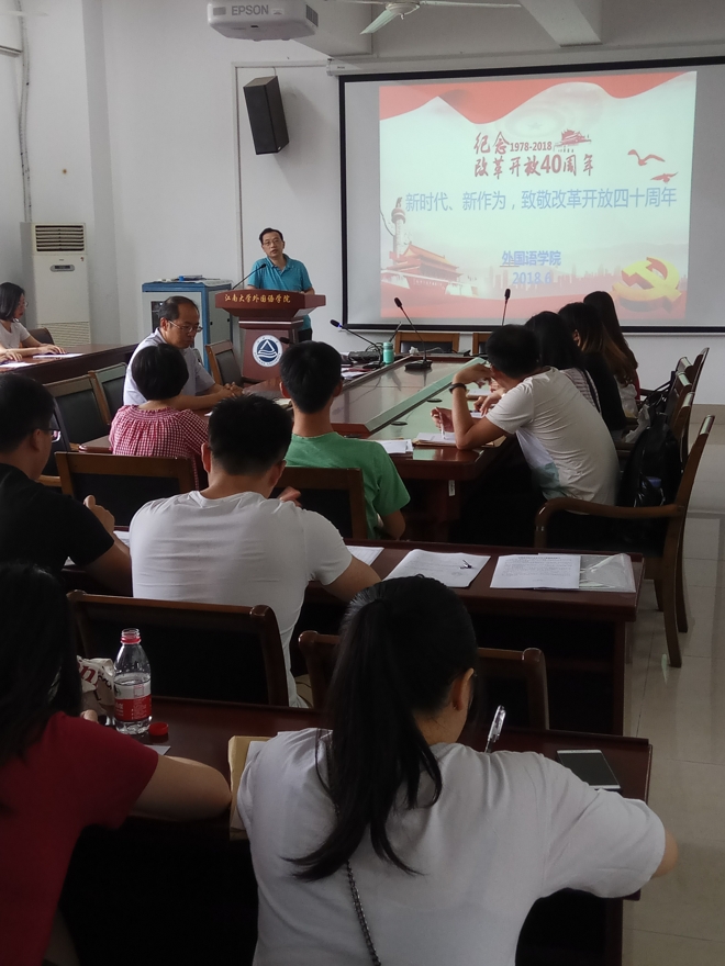 为庆祝建党97周年,加强学生党员党性教育,6月25日,学院党委书记黄城芳为全院学生党员讲授了“新时代、新作为,致敬改革开放四十周年”的“七一”专题党课。