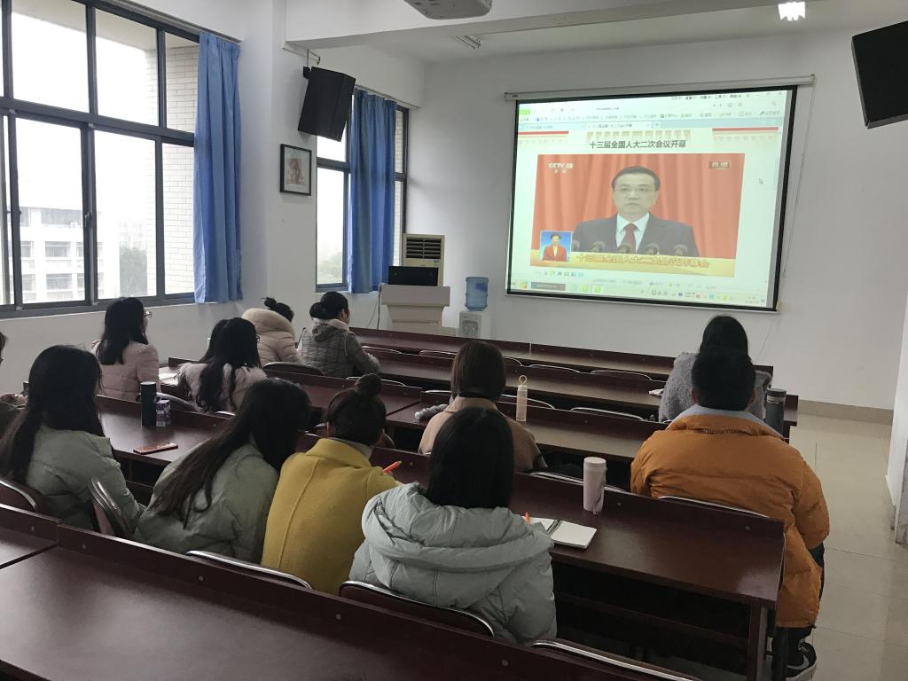 2019年3月5日上午,十三届全国人大二次会议在北京隆重召开。为引导学生关注两会召开盛况,增强学生社会意识,伟德国际1946组织各学生党支部学生党员在学院A433集体收看两会直播视频。学院分团委辅导员老师黄颖、张圆也和同学们一起收看直播,学习两会精神。