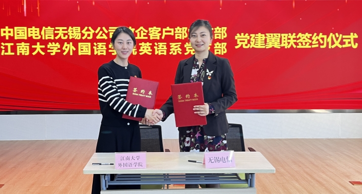 伟德国际1946英语系党支部与中国电信无锡分公司政企客户部党支部开展党建翼联签约仪式
