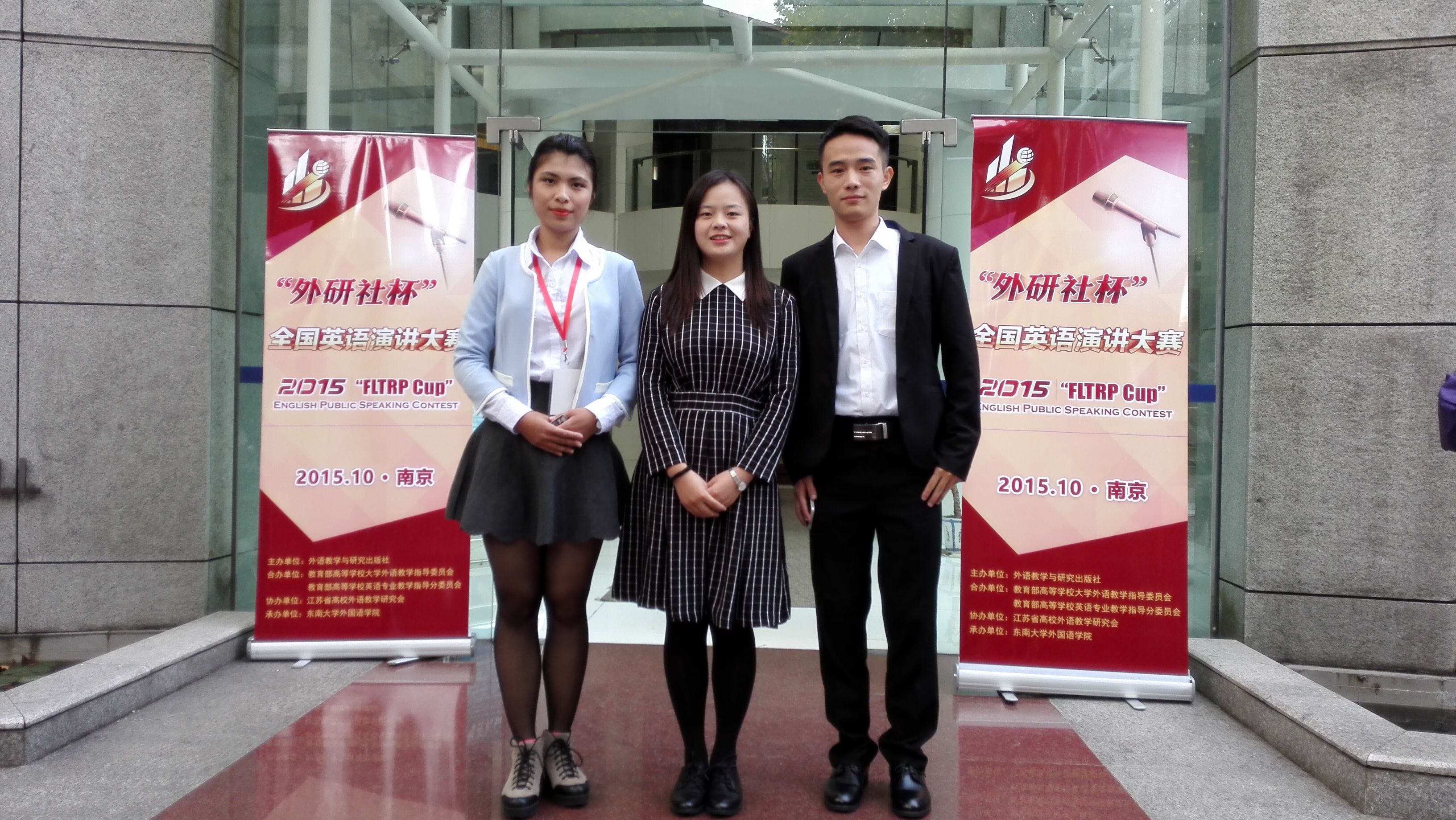 2015外研社杯全国英语演讲大赛江苏赛区决赛于1031-111日在东南大学举行,来自全省高校150多名选手及百余位指导教师参加了比赛。外语学院叶挺、潘梦婷、食品学院黎蕾蕾同学在比赛中凭借出色的表现,分别获二等奖和三等奖的好成绩。严敏芬教授和钱薇薇老师带队参赛,分别获得优秀指导教师荣誉称号。