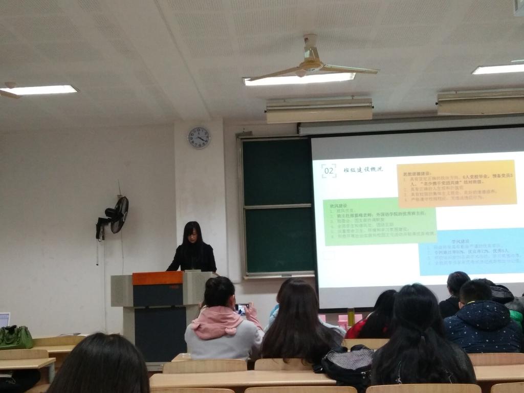 此次先进班集体评选,遵循“公开、公平、公正”的原则,在各年级评比推荐的基础上,共有19个班级进入到学院先进班集体评选。本次先进班级体评选活动由每月的班团创优得分与现场的风采展示两部分构成。在班级风采展示分为两部分,第一部分为班级简介和荣誉,第二部分为班级建设成果及特色,包括建设理念,建设制度和班级活动。在风采展示中,各参评班级代表按抽签顺序依次登台,通过PPT、视频、演讲等多种形式,全面展现了各班独特的精神风貌和班级建设成果。