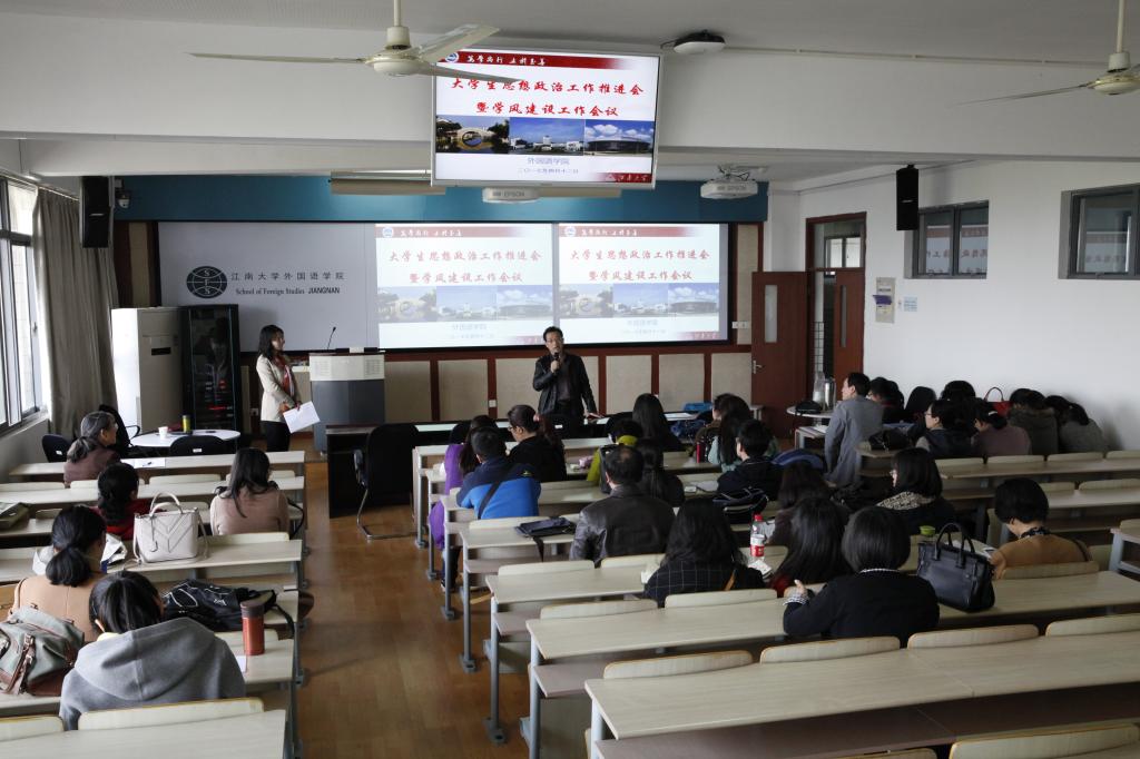 会议伊始,黄城芳书记组织学习了习近平总书记在全国高校思想政治工作会议上的讲话,传达了学校党委思想政治工作会议精神。会议要求广大老师认真学习和思考习近平总书记提出的“高校思想政治工作关系高校培养什么样的人、如何培养人以及为谁培养人”这个根本问题,坚持把立德树人作为中心环节,把思想政治工作贯穿教育教学全过程,实现全程育人、全方位育人。