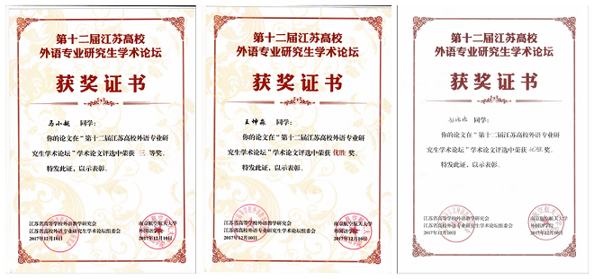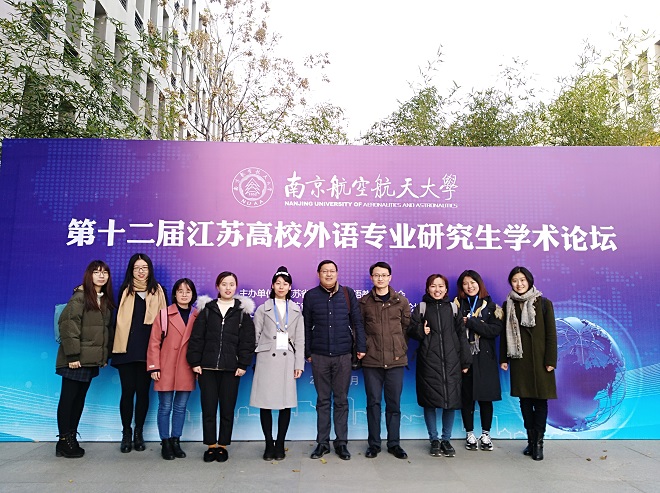 2017年12月8至10日,由江苏省高等学校外语教学研究会和江苏省高校外语专业研究生学术论坛组委会主办,南京航空航天大学伟德国际1946承办的第十二届江苏高校外语专业研究生学术论坛在南京航空航天大学举行。省内高校160余名博士、硕士研究生及其领队教师汇聚一堂,我院16级研究生马小越、邱思佳、孙培培、王坤淼、谢婷婷、余婷婷、张芮和17级研究生潘婧在朱义华副院长的带领下参加了此次论坛。