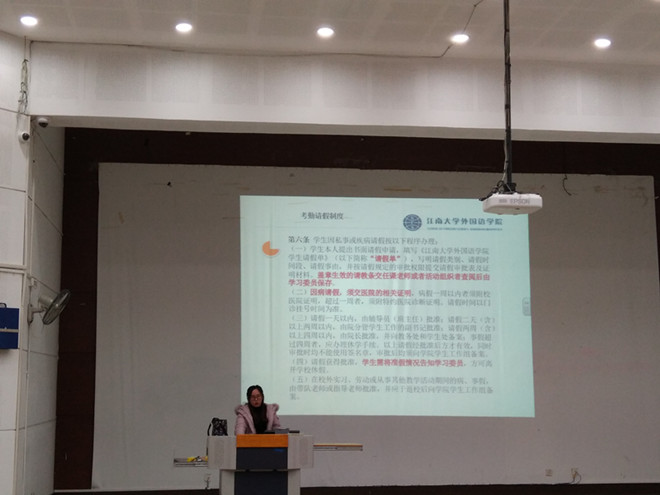 张老师在简要介绍分团委分工调整后,就严肃考风考纪问题,详细解读了《伟德国际victor1946课程考核与管理实施细则》、《伟德国际victor1946学生违纪处分规定》和《伟德国际victor1946学士学位授予实施细则》,并希望同学们能正确认识考试的目的和意义,以平和的心态、拼搏的精神全面复习、诚实应考,同时考后应认真总结与反思,不断进步。其后,就近期学风建设中的关键问题进行了交流,强调了学院的考勤请假制度、宿舍安全问题等。张老师以“Hi, guy, Aim High”作为结束语,提出了对同学们的期望。随后,史荷敏就考风考纪、请假考勤以及宿舍管理等方面进行了的补充发言。