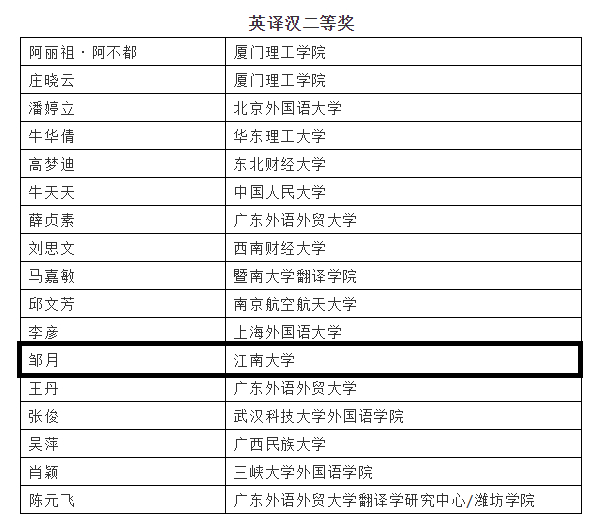 2018年10月16日,第三十届韩素音国际翻译大赛获奖名单公示,伟德国际1946英语语言文学专业17级硕士研究生邹月获得“英译汉”二等奖。