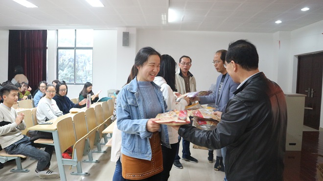 慰问会由杨艳老师主持。会上,黄书记鼓励青年学生积极考取研究生,对社会、对国家做出更大贡献。他指出,只要大家确立考研的目标,坚定考研的决心,向着理想大步前进,“我们有能力有基础有信心一定能成功实现愿望。”