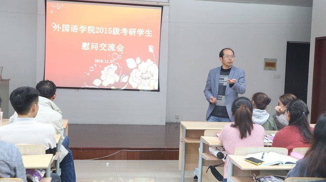 为帮助考研学生解决实际困难,鼓励学生积极迎考,增强同学们的信心,舒缓同学们的压力,2018年11月07日下午伟德国际1946在文科楼A206召开了“2015级考研学生慰问交流会”。全院近100名考研学子参加会议,学院党委书记黄城芳、党委副书记副院长刘伯贤、副院长方文开及教务办王琰玲、学工办杨艳等老师出席会议。
