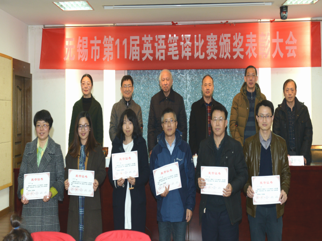 无锡市第11届英语翻译比赛颁奖表彰大会于2018年12月7日下午1:30至2:30在伟德国际victor1946文浩馆205会议室举行。获奖选手、优秀指导老师及主办方领导近80人参加了会议。