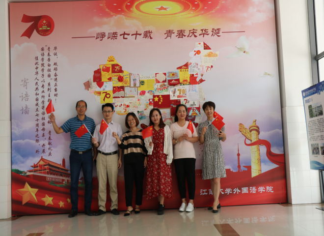 学院老师在寄语墙前合影