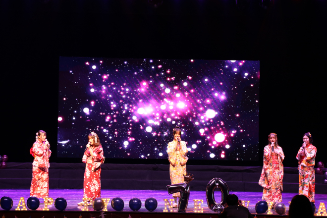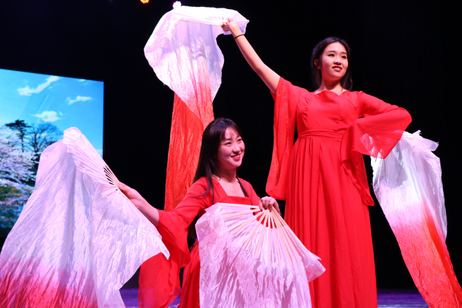 晚会开场由勿氧器乐团带来《董小姐》,气氛热烈,燃爆全场。随后,晚会正式开始,由外院各位老师录制的祝福视频展现了伟德国际1946温暖大家庭的温馨氛围,同时表达了各位老师对同学们的衷心祝福和殷切的期望。接下来十三个节目依次精彩呈现,古风舞蹈《清平乐》舞步优美,极具中国风的优雅与端庄;小品《我是李焕英》既有风趣幽默,也有温情动人,演员精彩的表演让我们在欢声笑语中体会到真情的价值;八协音乐社带来改变歌曲《八月十五忆吃面兄弟》,年轻富有朝气的歌词和曲风点燃现场气氛;院艺术团带来的舞蹈《ADIOS》青春活力,展现了外院活力向上的学习风貌;由范喆老师和研究生张倩瑶带来钢琴小提琴合奏曲目《Adagio》,为大家呈现了音乐盛宴;英日文歌曲串烧《Oops,樱花》歌曲轻快活泼,展现了外院学子扎实的语言功底;19级带来了情景剧《来自江南的白雪》融合当下幽默喜剧元素,展现了19级新生极佳的创意;激情活力的爵士舞《bang bang》,活力四射,瞬间点燃全场同学的热情;器乐《大鱼海棠》宛转悠扬,中国风浓郁;18级特称团支部带来的红歌《红旗飘飘》为祖国母亲70华诞献礼;19级辅导员携手副班带来舞蹈《遇见青春》,轻快可爱的舞步洋溢着青春气息;钢琴伴舞《樱花》动听美妙,舞姿柔美动人;最后外院学生会为大家带来大合唱《我的秘密》,晚会在热烈的气氛中圆满结束。