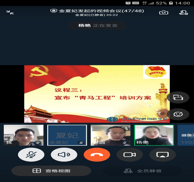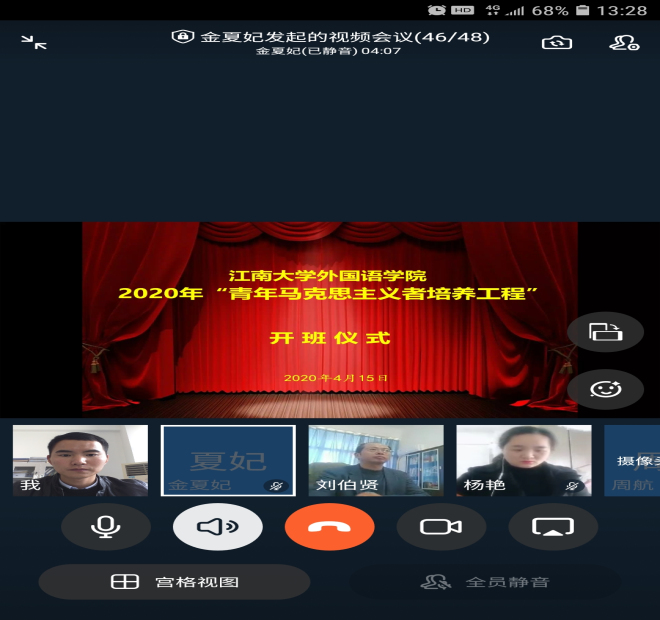 2020年4月15日下午1:30,伟德国际1946青年马克思主义者培养工程训练营(以下简称院“青马工程”)开班仪式在钉钉平台举行。学院党委副书记、副院长刘伯贤,分团委书记杨艳,辅导员苗文建以及本期43名青马训练营成员参加“云端”开班仪式。开班仪式由分团委副书记张圆主持。