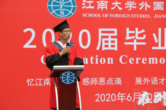 谢瑜老师作为教师代表发言,用睿智温馨的话语表达了对同学们的衷心祝愿和殷切寄望,希望同学们在新的人生航程中胸怀梦想、实干担当,求真务实、开拓进取,用实际行动诠释新时代江南外语人的历史使命和责任担当。