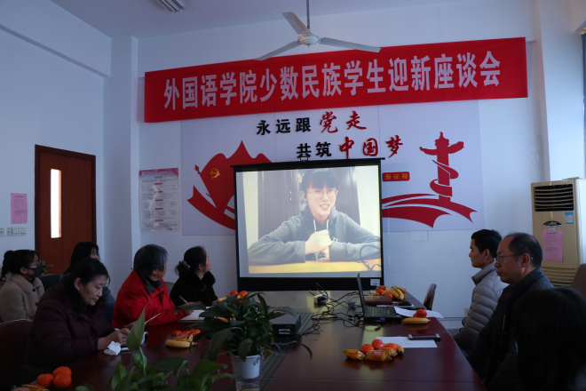 会议一开始,获得学校十佳大学生称号的冯小宸同学,通过在线视频的方式为现场的学生分享了自己的学习感悟和奋斗故事,她以自己学习“逆袭”的经历鼓励大家努力学习,勇敢挑战。接着,现场的同学纷纷分享了自己在校的学习生活情况、遇到的困难以及自己民族的春节习俗。来自苗族的19级许维念同学说:来到伟德国际1946后,感受到了老师和同学的关心,大学时间过得很快,希望可以在伟德国际victor1946通过自己的努力获得成长。来自柯尔克孜族的迪娜热同学主要说了自己在专业学习上的苦难,她表示自己目前还在摸索学习方法阶段。整个分享交流环节轻松愉快,现场气氛融洽。