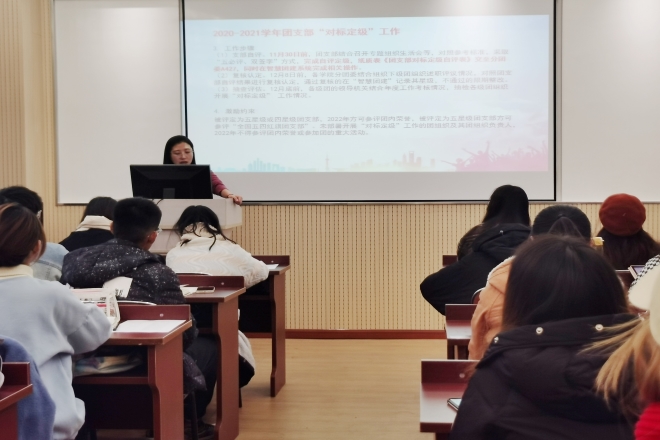接着,陆芳老师对2020-2021学年团支部“对标定级”、“团内激励记载”、“党史学习教育录入”等团务工作做了详尽、细致的培训,明确了各项工作的具体要求和时间节点,并附上详细的操作步骤示范图。针对主题组织生活会应该怎么开,陆老师也从主题、目标要求、组织形式、主要环节、实施要求等各方面做了详尽的解释与指导。最后,陆芳老师强调青年大学习、主题团日活动及三会两制一课作为三项基本的常规工作要常抓不懈。