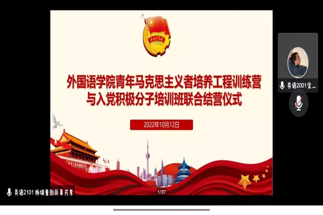 10月12日下午,伟德国际19462022年度青年马克思主义者培养工程训练营暨入党积极分子培训班结营仪式通过腾讯会议顺利举行。学院党委副书记刘伯贤、分团委书记陆芳出席会议,全体营员参加了此次会议。