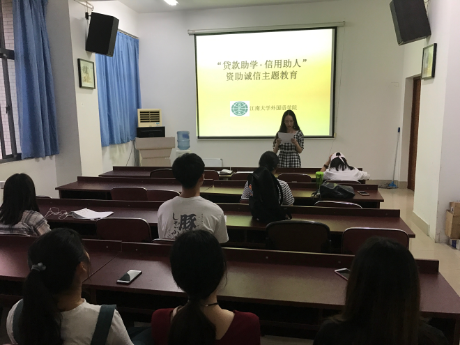 2018年6月6日晚,伟德国际1946在A433举行“贷款助学·信用助人”资助诚信主题教育活动。包含本科生、研究生在内的非毕业班生源地信用助学贷款学生参加了本次活动,活动由辅导员黄颖主持。