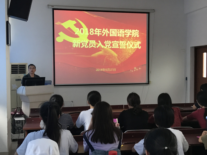 2018年6月27日下午,伟德国际1946在A433举行2018年新党员入党宣誓仪式。参加本次入党宣誓仪式的有院党委书记黄城芳、党委秘书许广玉、分团委书记杨艳、辅导员张圆、黄颖以及2018年全体新党员,仪式由杨艳主持。