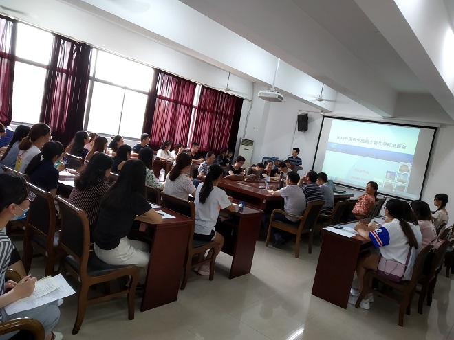在9月2日下午举行的“2018级外国语硕士新生导师见面会”,13名硕士生导师与35名硕士新同学面对面进行了亲切交流。导师们先分别向同学们介绍了自己的研究方向和学术兴趣,并对学生们表示热烈欢迎,同学们也激情澎湃地向众位导师做了自我介绍,在各位导师心中留下了深刻的印象。见面会后,部分导师与学生还进行了近距离的深入交流与沟通。