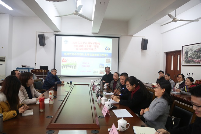 2018年11月19日下午,2018人文社科与学术期刊发展战略(无锡论坛)伟德国际1946论坛在外语学院大会议室举行。四位CSSCI刊物的主编或主任莅临学院,就如何向C刊投稿、如何选题、如何获得评审关注与学院师生进行了深入沟通并给予了切实指导。伟德国际1946全体研究生导师、博士学位教师、科研坐班教师及2018级研究生参加了本次论坛。论坛由院长龚晓斌教授主持。