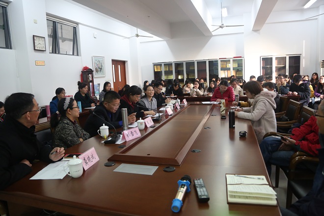 四位期刊编辑部老师分别是《东岳论丛》杂志的主编王波老师、《甘肃社会科学》杂志副主编巨虹老师、《云南社会科学》编辑部副主任杜雪飞老师与《江淮论坛》杂志的办公室主任周晓红老师。四位老师分别对各自期刊的性质、包含栏目等做了详细的介绍。他们开诚布公地向在座师生们介绍了编辑部选稿、评审的一些细节,并就老师们的写稿和投稿情况给了许多中肯的经验之谈。针对外语学院发文难的现象,四位老师也从审稿者的角度给予了解释,并多次强调深入的理论分析与创新的思想观点的重要性。他们认为外语学院师生要始终保持创新精神,在某一领域中要有突破,而在研究视角方面,可以考虑文化产业、文化建设、跨学科研究等方向。
