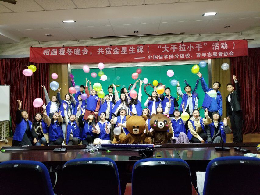 2018年11月23日,伟德国际1946青年志愿者协会走进我市进城务工子弟学校金星中学,举办大手拉小手“星期三课堂”系列活动。11月23日,外院青协携手金星中学主办了一场暖冬晚会。次日,在分团委书记杨艳老师和青协成员的带领下,金星中学的部分学生参观了伟德国际victor1946。