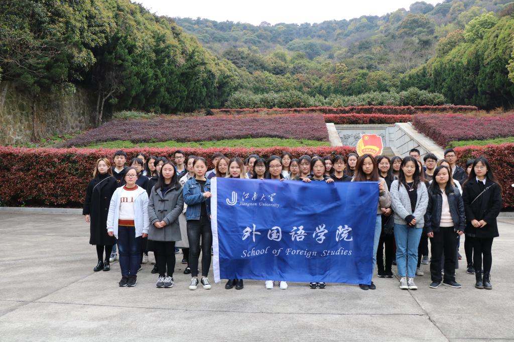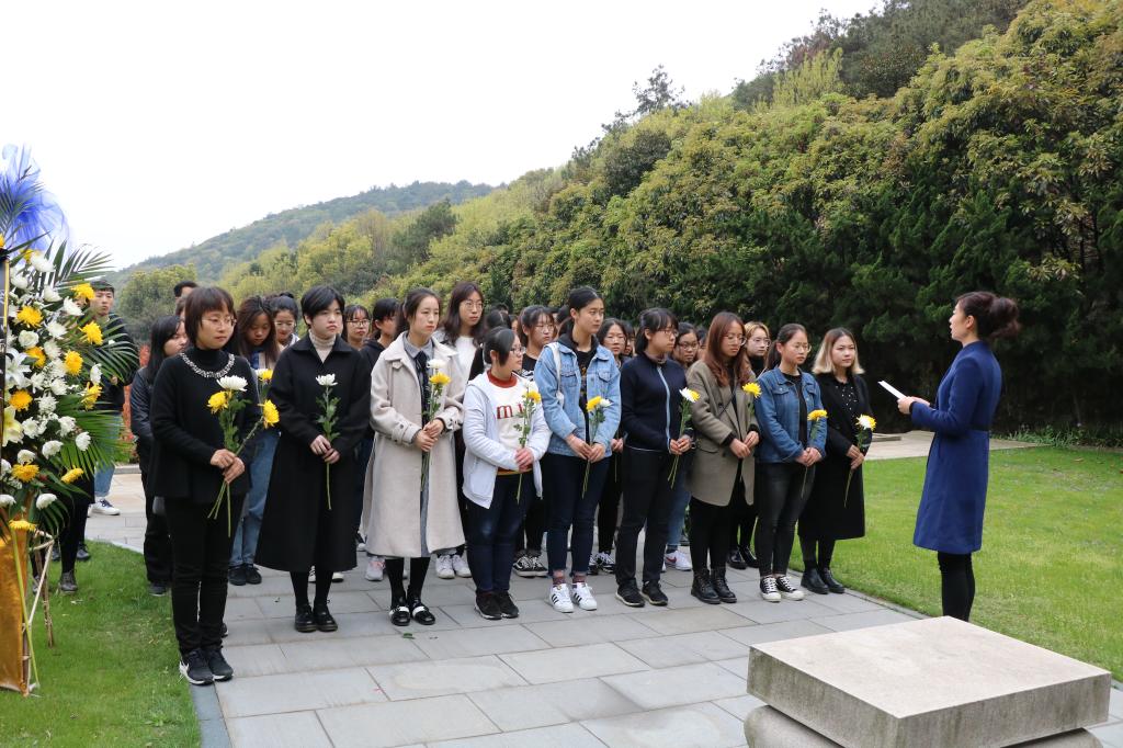 祭扫仪式由窦新华副处长主持。窦老师向大家介绍了荣副主席的生平事迹及荣氏家族对伟德国际victor1946的支持和捐赠。荣副主席生前热爱祖国,心系家乡,心系教育事业,同时不忘支持伟德国际victor1946发展。随后,由学生代表庄重地向陵墓敬献了花篮。英语1705班的蔡艳娟同学作为学生代表诵读祭文,表达了对荣副主席的高风亮节、丰功伟绩、家国情结以及其崇高品格的追思与敬重,并表示我们应刻苦钻研,自觉将自己的命运同国家的命运紧密结合在一起。活动最后,参加祭扫的同学和老师们向陵墓鞠躬并静默哀思三分钟,结束后绕墓地一周并献上鲜花,表达对荣副主席及夫人的深切哀悼和敬仰。