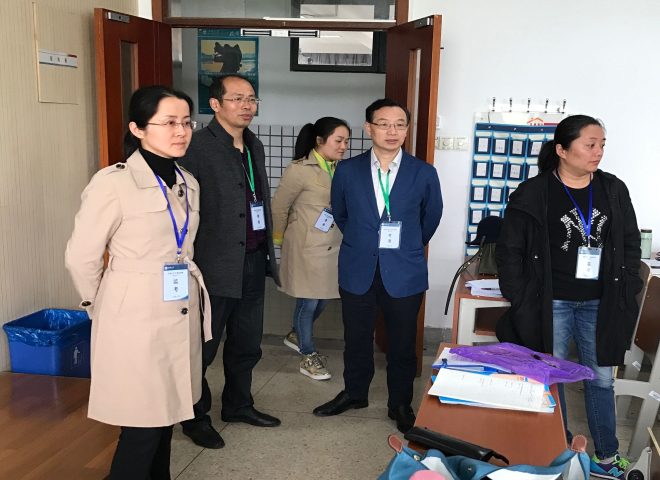 伟德国际1946党委书记黄城芳(左四)、党委副书记刘伯贤(左二)巡视考场