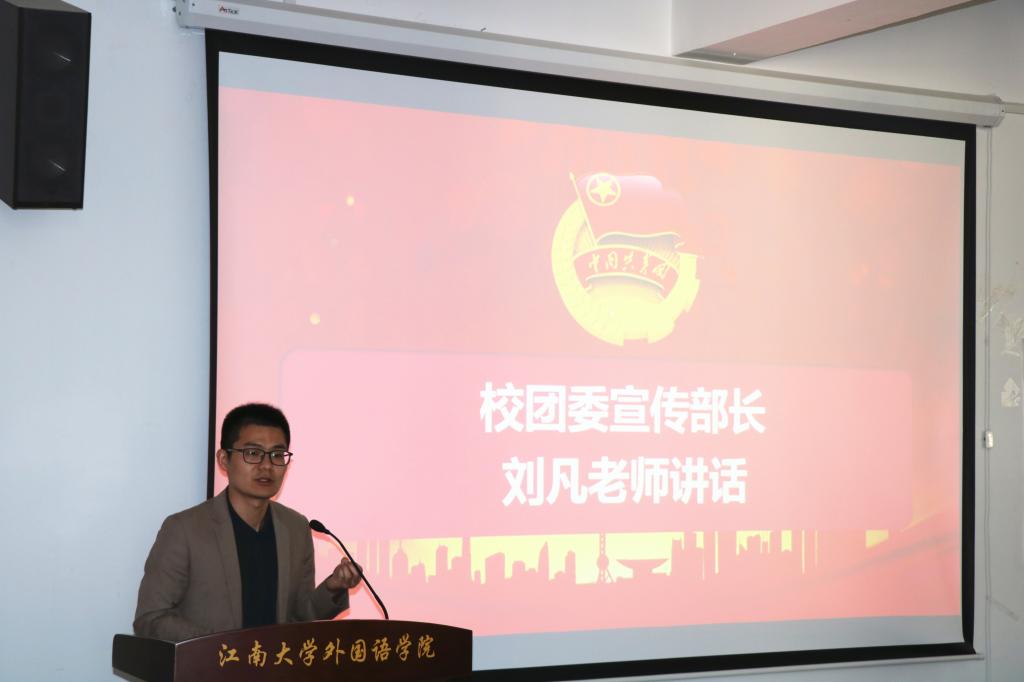 校团委宣传部部长刘凡老师在特称团支部交接仪式上讲话