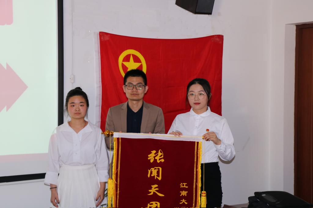 校团委刘凡老师为张闻天特称团支部授旗