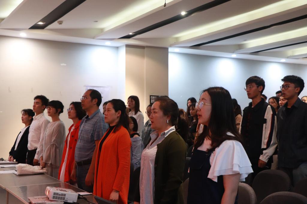 仪式在奏唱国歌中拉开序幕,三个学院主题实践团队代表分别上台分享实践成果。伟德国际1946日语1703班于雯雯代表我院三个实践小组进行主题为“不忘初心、砥砺前行——我和我的祖国主题实践活动”成果汇报。她从听、学、读、唱、行、拍六个方面详细介绍小组的实践内容和学员们的所思所悟,鼓励广大学员不忘初心、不断进步,在求知中践行,在学习中成长。