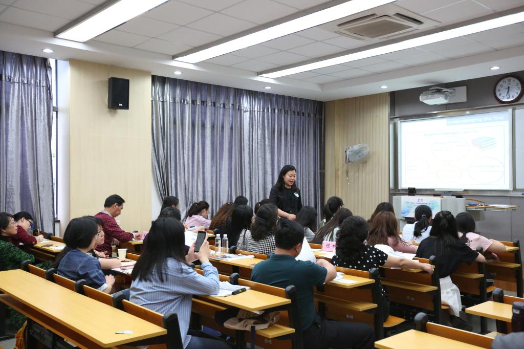 接着,李霄翔教授主持本科综合组和视听说组一等奖选手现场PK。本科综合组与本科视听说组第八届与第九届(2017年与2018年)一等奖获得者与本届(2019年)一等奖选手现场角逐特等奖。经过现场PK,我校刘玲老师、江苏科技大学张学谦老师获本科视听说组特等奖、河海大学何佳老师获本科综合组特等奖。她们三人将代表江苏赛区参加下半年在上海举行的本科综合组和视听说组两个组别的全国总决赛。