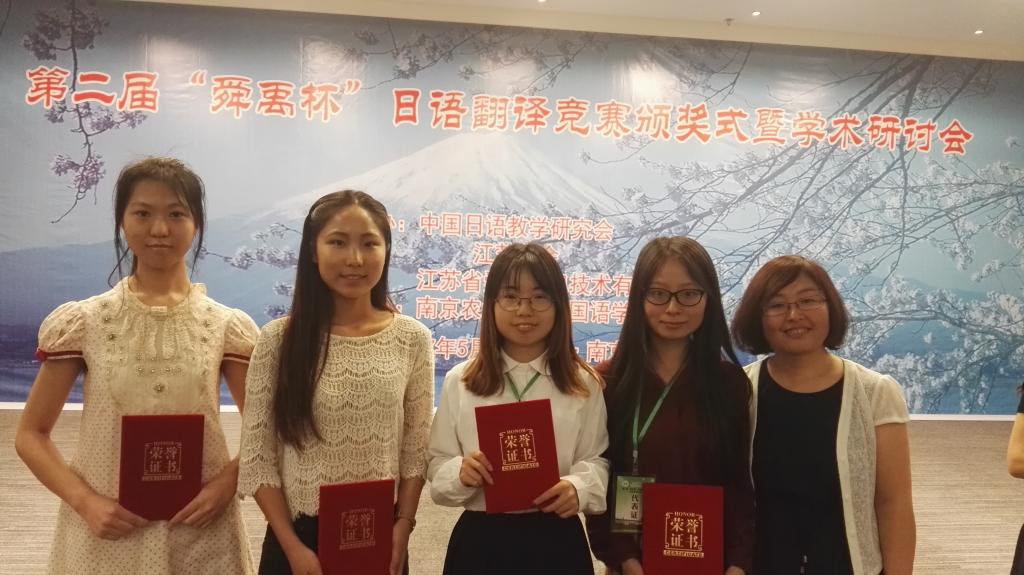2017年5月14日,第二届江苏省“舜禹杯”日语翻译竞赛颁奖式暨学术研讨会今日在南京农业大学隆重召开。我院许鹤瑶等四位同学在本次比赛中荣获佳绩,我院日语系被授予最佳组织奖。