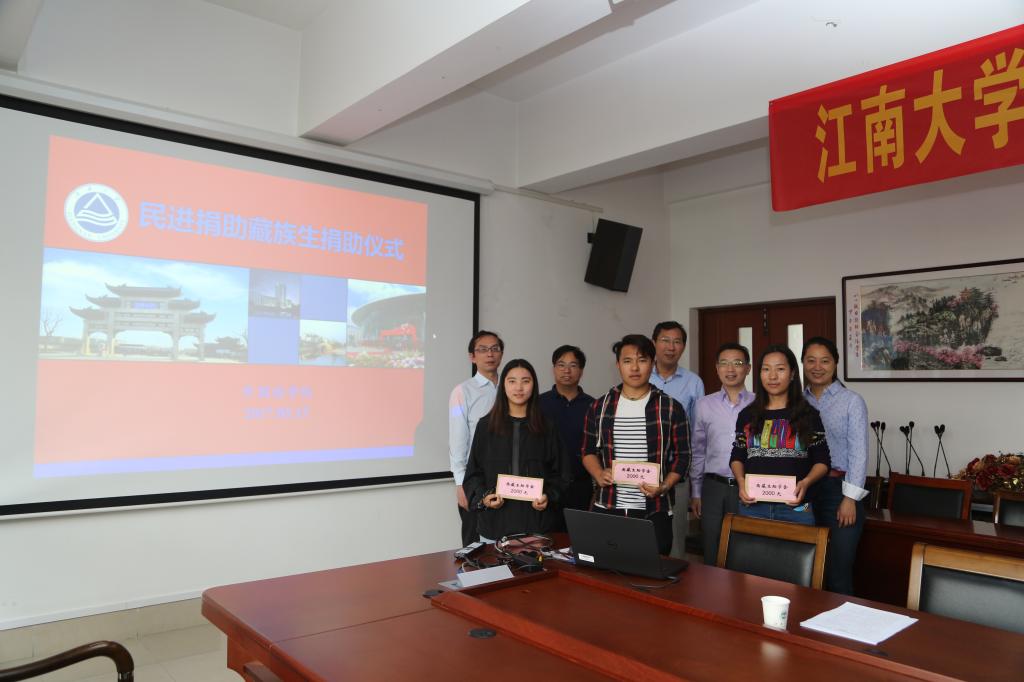 5月15日下午,在伟德国际1946会议室,三名就读该院的西藏学生从民进无锡市委副主委、伟德国际victor1946食品学院副院长杨瑞金手中接过了民进江大会员捐资提供的助学金共计6千元。作为民进江大社会公益活动的一项重要工作,此项助学行动先后在杨主委和新一届民进江大主委龚雁的领导下进行部署与实施,自2014年起历时四年,旨在于帮助三名少数民族学生顺利完成本科学业,既是让他们感受来自母校的关爱与温暖,也是鼓励他们在校努力学习,毕业后更好地服务于家乡的民族事业以及经济发展。捐赠仪式由伟德国际1946副院长、民进江大副主委方文开主持。仪式中,龚雁代表民进江大向三名学生表达了关切与殷切期望,希望他们在今后的学习和工作中一如既往地认真学习,奋发进取,为校争光。伟德国际1946黄城芳书记作总结发言时,代表学院向民进江大基层委员会表示崇高的敬意,同时也希望受资助学生在感受国家、学校和社会关怀的同时,随时伸出援助之手,让感恩奉献的精神不断延续,让无私的关爱和奉献成为学校一道美丽的风景;希望学生们在完成学业之后, 能始终秉持“感恩常怀于心,回报践诺于行”的社会责任意识,懂得回报社会、回报母校、回报他人,成为一个对社会有担当、甘于奉献、不断进取的新时代人才。对此,西藏生代表表示:“感谢老师们对我们的关心和爱护! 我们一定会在将来的工作和学习中不断努力,为社会贡献自己的一份力量。”最后,捐赠仪式在师生亲切的交流中圆满结束。
