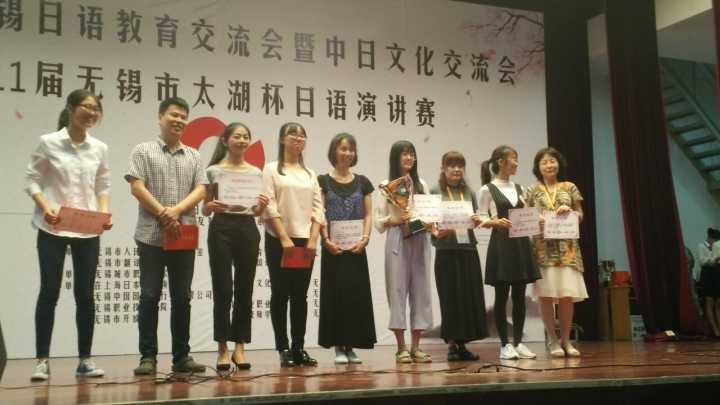 下午12点45分,演讲比赛正式拉开帷幕。经过激烈的角逐,我校学生凭借精彩的演讲,流利的日语,从来自8个学校的17名选手当中脱颖而出,赵羽熙、周子涵、张亚鑫三位同学分别荣获学生组的特等奖、一等奖和二等奖。中西由美子、西川明子、藤田美奈子三位老师也荣获得优秀指导教师奖,无锡市翻译协会会长为获奖选手与指导老师颁发了荣誉证书。除此之外,我校2016届毕业生陈天泓代表三菱东京UFG银行参加比赛,荣获社会组特等奖。学生们取得优异成绩充分证明了我校日语水平,为我校赢得了荣誉!