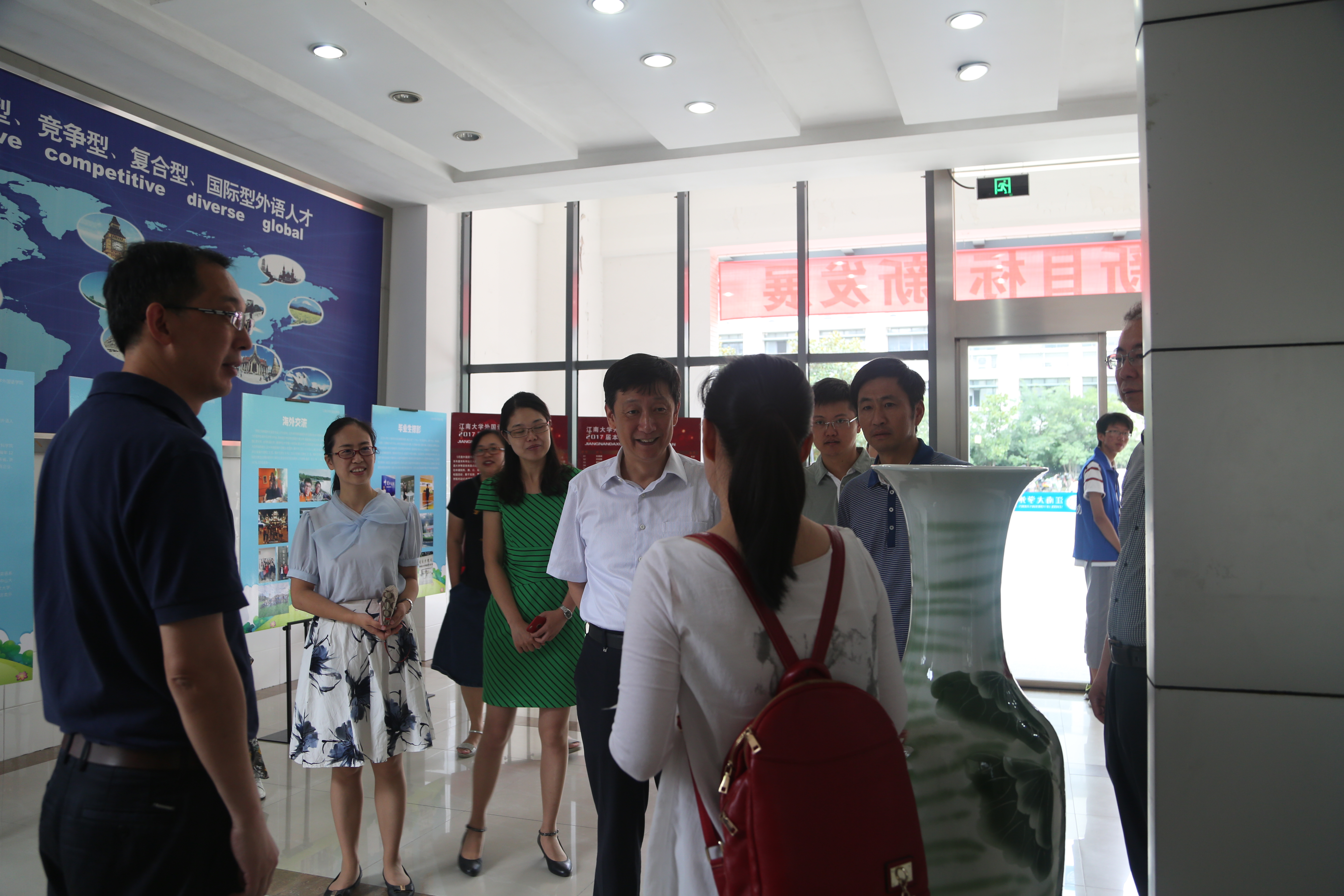 上午十时许,校党委书记朱拓,校党委副书记戴月波在伟德国际1946院长龚晓斌、院党委副书记赵莹等学院领导的陪同下视察了外院迎新工作人员的工作情况并与来报到的新生进行了简单交流。