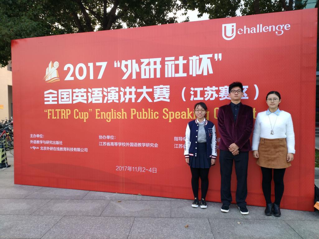11月3日至4日,“外研社杯”英语演讲大赛江苏省复赛在常州大学武进校区举行。来自省内73所高校的176名选手参加了此次比赛。复赛分为A、B两个赛场首先进行了一整天的定题演讲及回答问题的角逐,每个赛场排名前13位的选手进入第二天决赛的即兴演讲环节,竞争相当激烈。我校选手为商学院16级沈思佳、伟德国际194615级项梦琦以及17级荀子杰三位,指导教师为严敏芬教授和钱薇薇老师,龚晓斌院长受邀担任了决赛阶段的评委工作。2017年定题演讲题目“China, A Global View”,选题理念紧跟国家发展,格局视野更创新高,启发选手思考“中国的世界观”与“世界的中国观”,为选手提供了广泛的思考与展示的空间。即兴演讲话题多样,现场问答精彩不断,考察选手的临场应变能力与平日学习积累。最终,我校沈思佳同学获得三等奖,项梦琦和荀子杰获得优胜奖。
