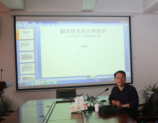 11月8日下午,伟德国际1946大会议室济济一堂,迎来扬州大学博士生导师周领顺教授题为“翻译研究热点和展望——兼谈有关课题的申报”的学术讲座。讲座由朱义华副院长主持。