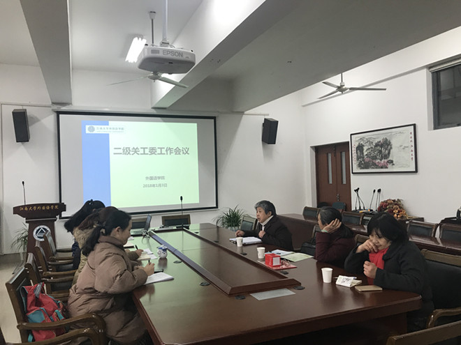 江南大学伟德国际1946二级关工委工作会议于2018年1月3日下午2:00在学院楼A349顺利召开。学院关工委主任赵莹,副主任张晓虹,鲍国庆、吴艳敏、许广玉等全体委员参加了此次会议。会议由关工委主任赵莹主持。