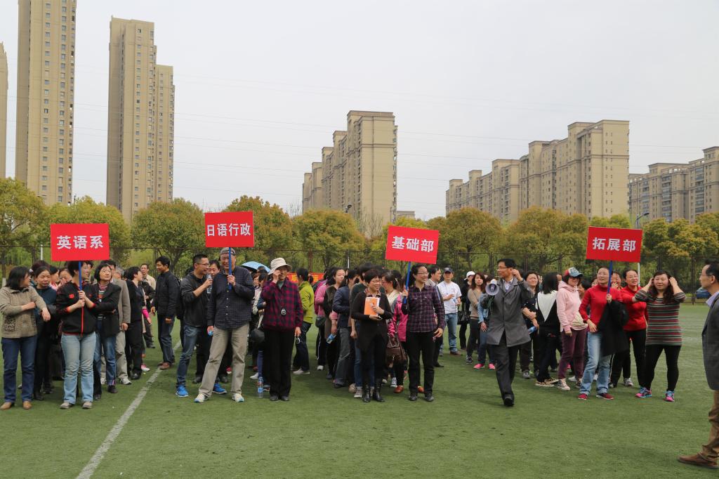 415日下午两点,伟德国际1946在学校体育中心东侧小足球场举行了第五届教职工运动会。运动会由学院分工会主席管纪龙主持,学院党委书记黄城芳做开幕式动员讲话,拓展部米家全老师和英语系朱义华老师分别代表裁判员和运动员做宣誓发言。运动会分为四个团体代表组,分别为英语系、基础部、拓展部、日语行政等合计120余人,4名学生志愿者参与运动会会务。