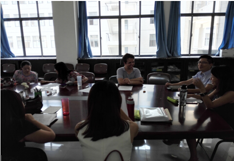 97日下午,英语系综英老师在系主任孙志祥教授的召集下,英语阅读课外教Benjamin Abbey 一起,就提高新生课外阅读的质量进行了探讨。