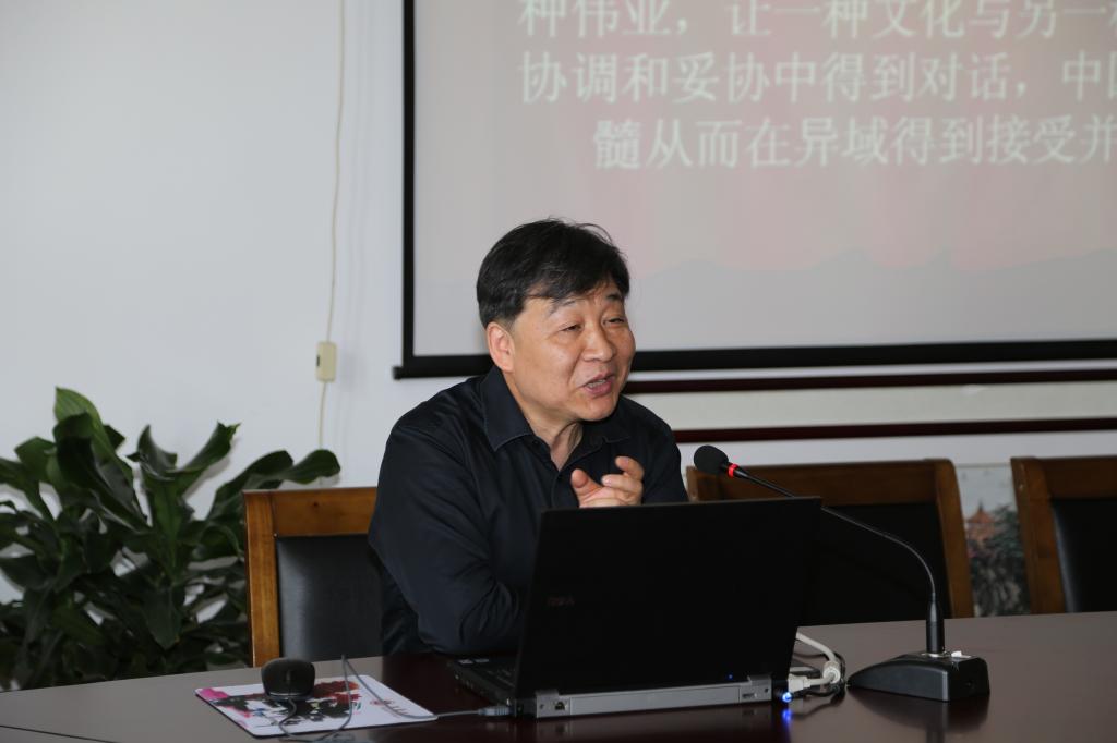 428下午,清华大学外文系罗选民教授应邀在伟德国际1946大会议室(A349)做了题为“文化自觉与中国经典英译”的学术讲座,讲座由翻译研究团队负责人王金安教授主持,学院领导和师生共50余人参与了本次学术活动。
