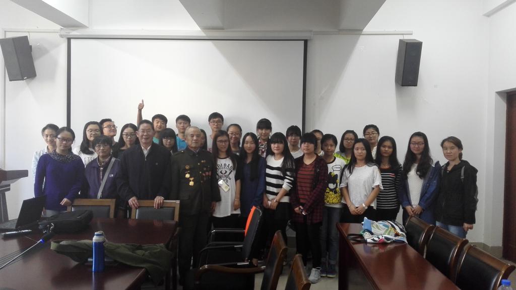 2015年11月6日下午,伟德国际1946在文科楼A349举行了主题为“走近抗战老兵,悟爱国主义精神”的党团共建座谈会。我院党团共建结对支部——社桥党支部书记厉光裕、支委杨丽娟、新四军抗战老兵许德山、英语1403团支部全体成员参加了此次座谈会。座谈会由分团委书记陈昀主持。