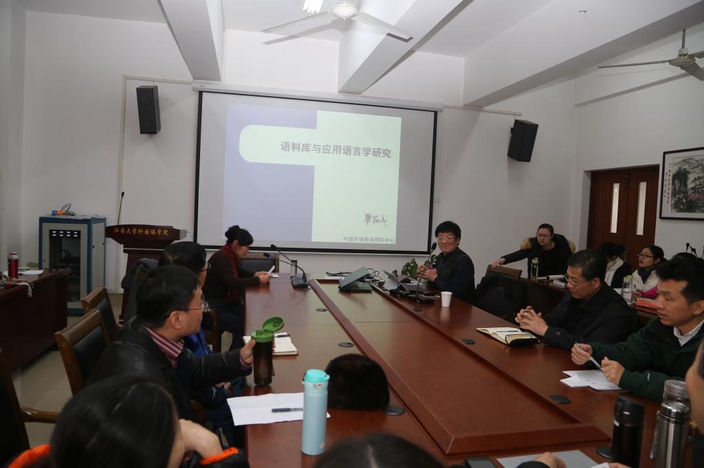 最后半个小时是互动环节,梁教授与在场师生就语料库在翻译和文学研究中的应用展开了热烈讨论,就师生们所提出的问题阐释了自己独到的见解,并热情欢迎江大学子将来报考北外博士,还慷慨地与老师们分享了他自主开发的语料库软件。