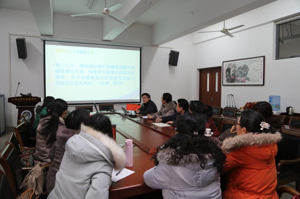 伟德国际1946“卓越课堂”翻译模块互动式系列讲座第二场在拓展部翻译组教师们的期盼中于2016年1月12日下午在伟德国际1946A349准时开讲了。主讲人为资深翻译教授孙志祥老师,讲座题目是《翻译理论在翻译教学中的应用》。