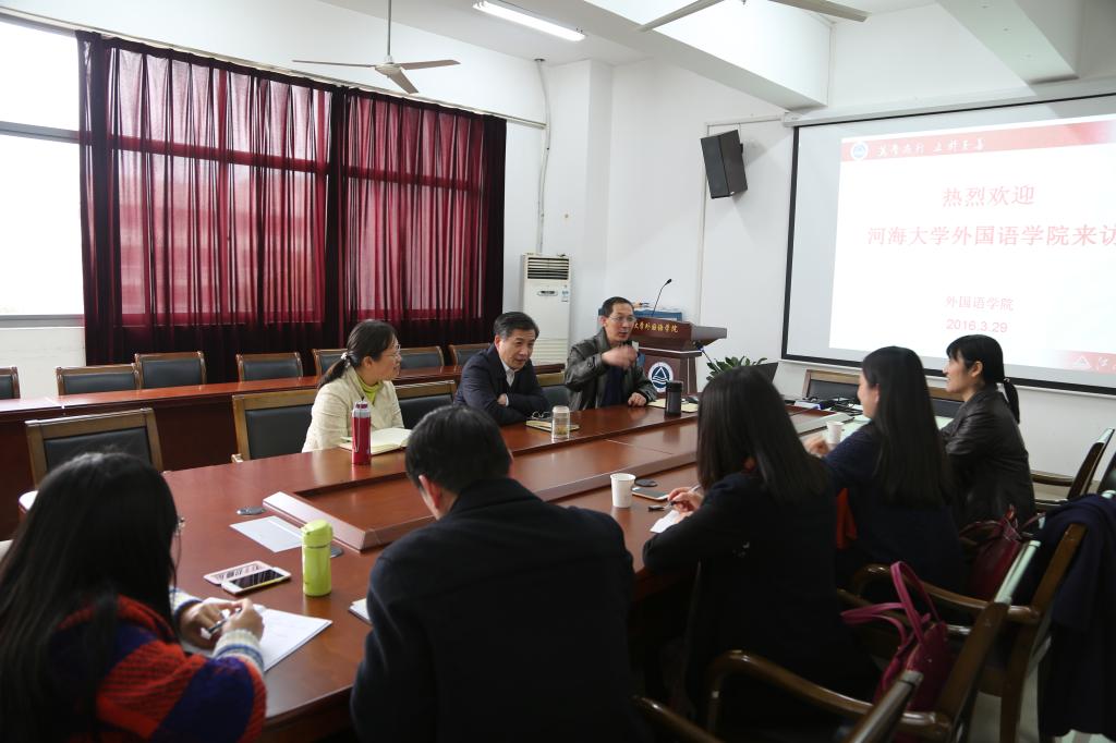 329日下午,河海大学伟德国际1946杨荣华副院长带领朱志梅副书记、系主任等一行5人来访。我院龚晓斌院长、李健雪副院长、施惠平副院长热情接待了来访宾客。