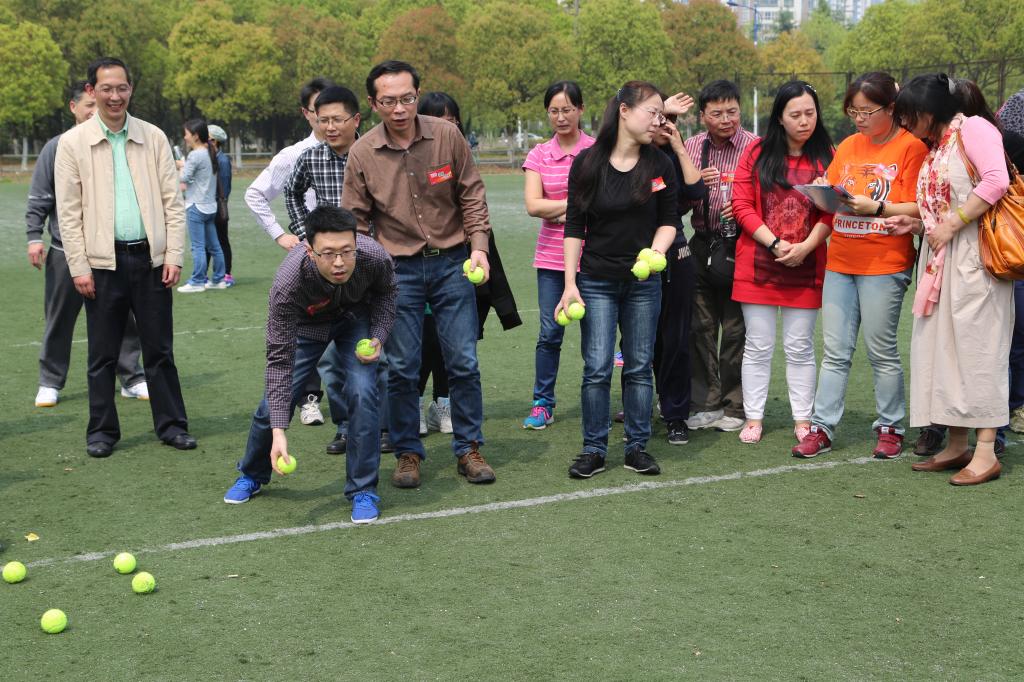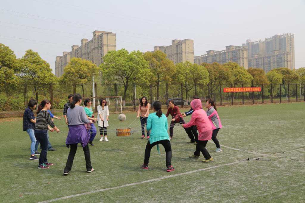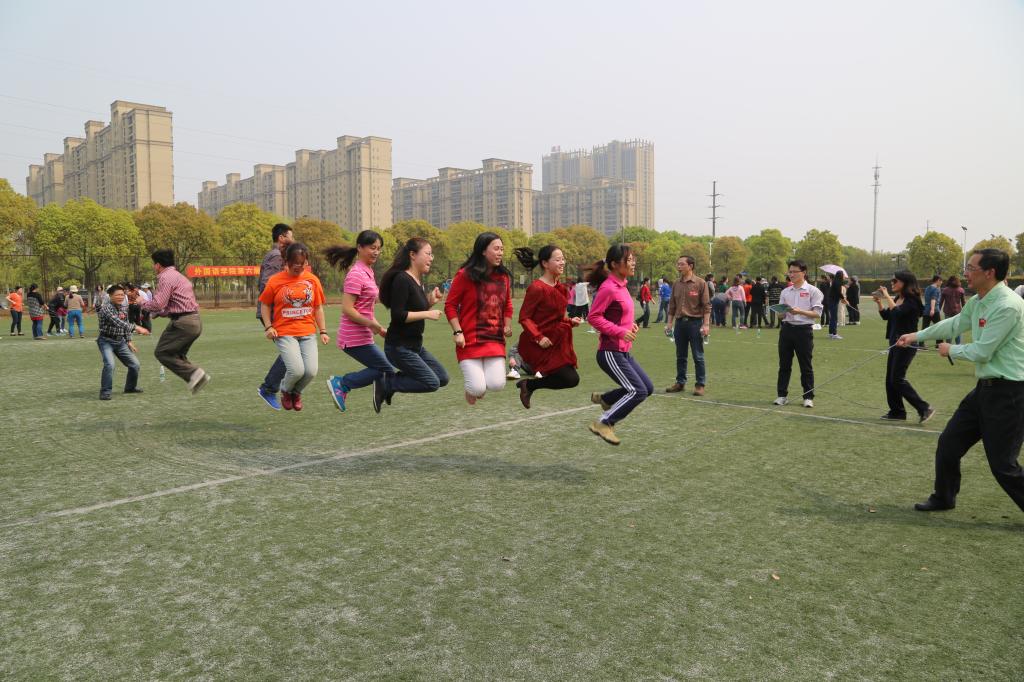 本届运动会以“运动、健康、快乐”为主题,倡导教职工积极参与运动与健身,运动会设计项目四大项团体项目,分别为:草地滚球、击鼓颠球、绕场400米竞走和团体跳绳,既有大家熟悉的击鼓颠球的传统项目,也有新加入的草地滚球竞技项目。经过近2小时的激烈角逐,英语系以优异的成绩夺得本届运动会草地滚球、跳绳两个项目的第一;行政代表队获得400米竞走第一;拓展部代表队夺得击鼓颠球项目第一;日语系获得跳绳第一(与英语系并列);基础部获得本届比赛中的最佳组织奖。