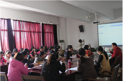 最后,谢竞贤老师简要介绍了我校即将启动的大学英语新教改模式,教师们根据个人特长与兴趣选择了教学方向,为教改的师资协调与转型做准备。大学英语教学改革逐步深化,教师们唯有立足当下,面向未来,开拓思路,修炼内功,才能应对新一轮的挑战。大学英语教学改革任重道远,充满活力、善于思考的大外教师团队在教改之路探索前行!