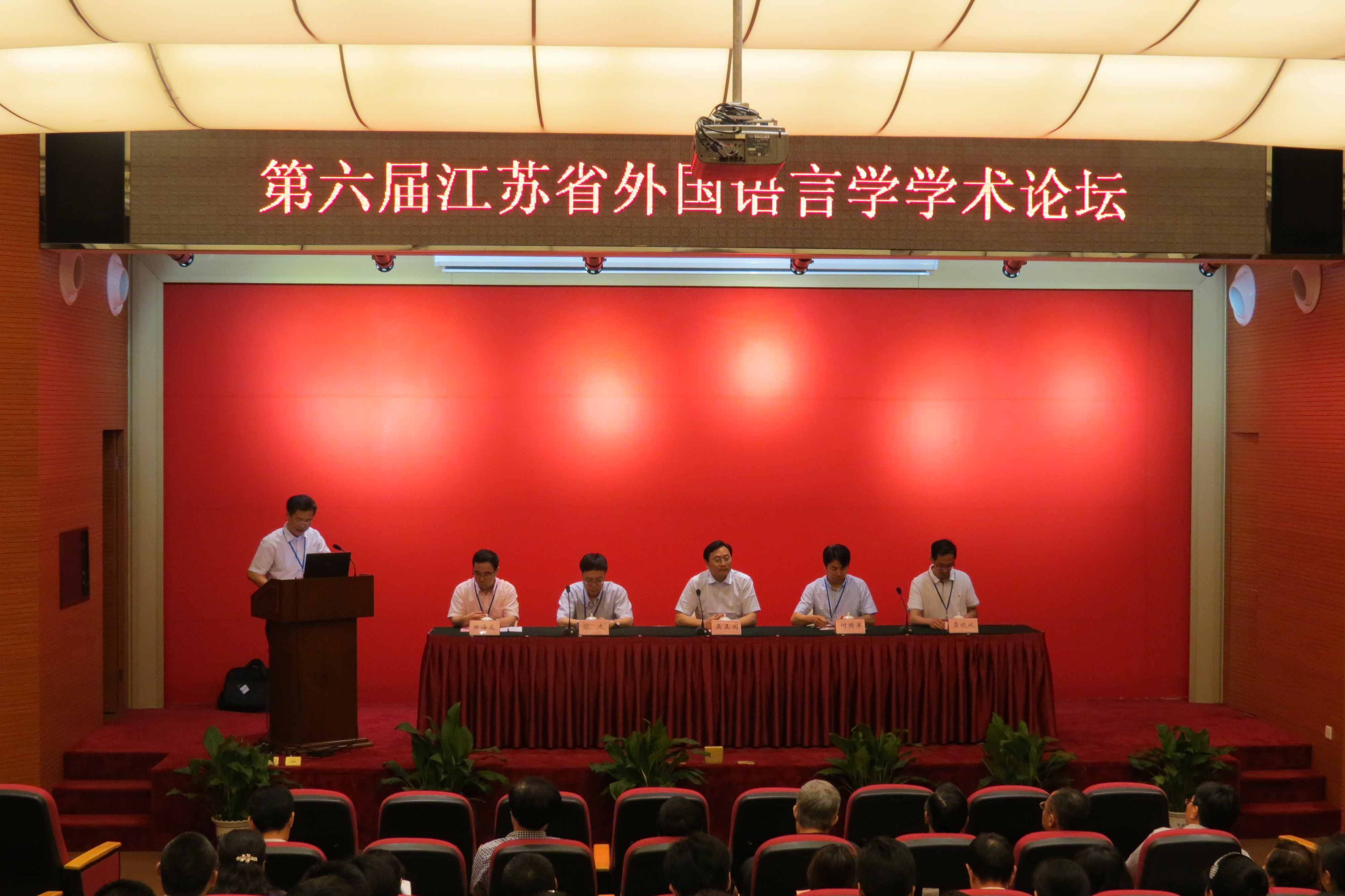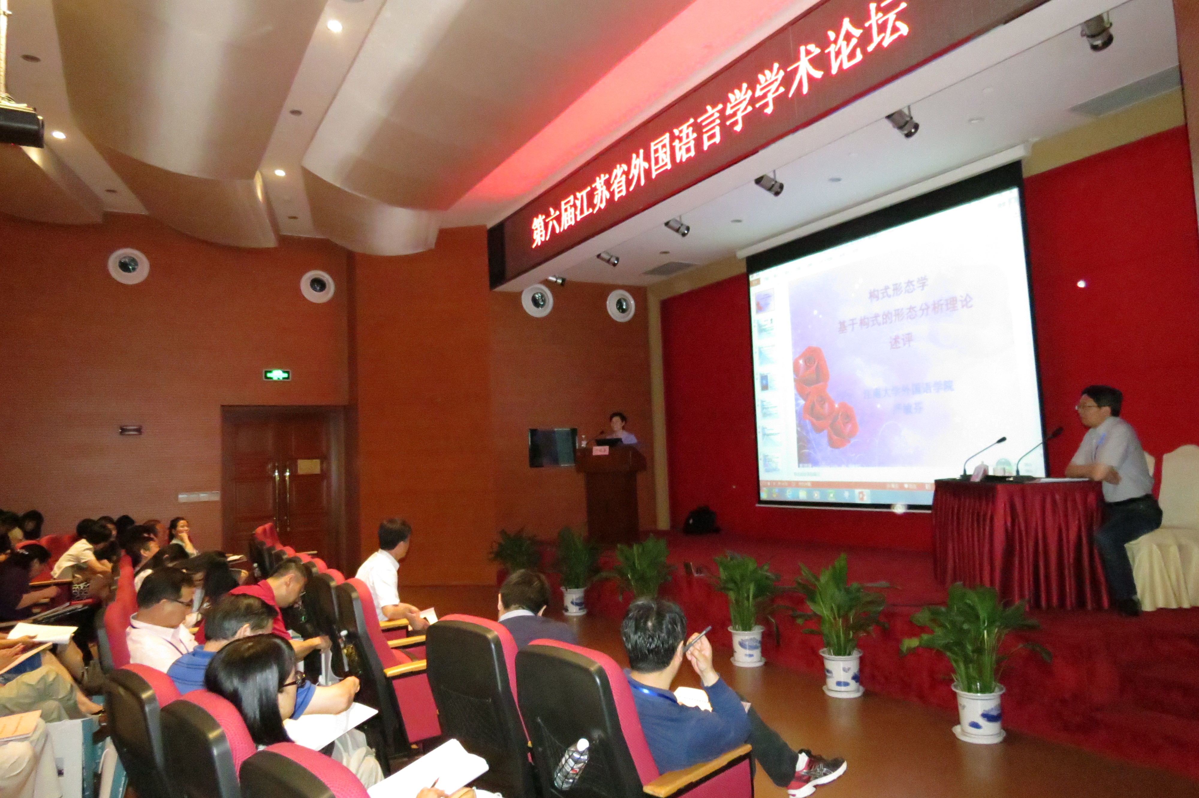 2014年5月30日至6月1日,由江苏省外国语言学会主办,伟德国际1946承办的“第六届江苏省外国语言学学术论坛”在无锡举行。伟德国际victor1946党委常委、校长助理吴正国、江苏省外国语言学会会长张杰教授、副会长陈新仁教授、江苏省社科联何国军处长、伟德国际1946院长龚晓斌教授以及40多所来自省内外高校的专家学者及青年学子近130名代表出席了本次论坛。 本次论坛围绕“当代外国语言学理论与应用”的主题而展开,话题涉及句法学、语义学、语音学、音系学、语用学、认知语言学、社会语言学、二语习得、外语教学、外语测试、语篇分析、心理语言学、语言哲学等领域。南京大学伟德国际1946陈新仁教授、天津外国语大学田海龙教授、华东师范大学伟德国际1946梁超群教授、伟德国际1946严敏芬教授等多名专家学者作了主旨发言。 在分会场讨论中,与会代表围绕“应用语言学”,“认知语言学”,“语用、功能、符号语言学”三个不同方向的理论与应用进行讨论和交流,南京大学伟德国际1946徐昉教授、南京师范大学伟德国际1946倪传斌教授、南京师范大学伟德国际1946王永祥教授等30名与会代表交流了论文,我院荆兴梅等4名教师作了小组发言。